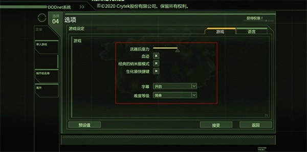 1、进入游戏之后,设置好语言,默认第一个简体中文;