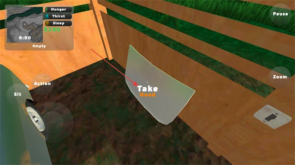 1、在场景中看到带有Take提示的物品,点击左侧Action按钮获取该物品。