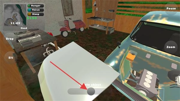 2、在汽车引擎区域操作时,按照提示拖动下方进度条可以调节部件安装方向,推进车辆的修复进程。