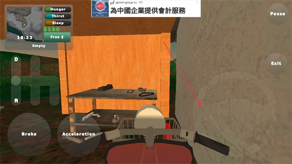 4、进入驾驶界面后,通过Brake和Acceleration按钮以及右下角方向盘控制车辆,若需退出可点击Exit按钮。