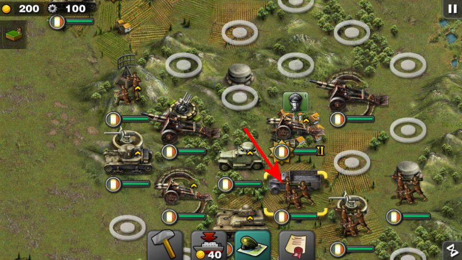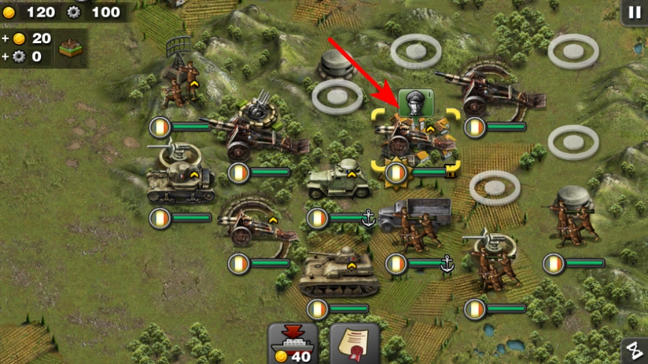 2、游戏中依照箭头方向点击部队单位,选中对应作战单位,这是操控部队的基础操作,点击后可执行后续指令。