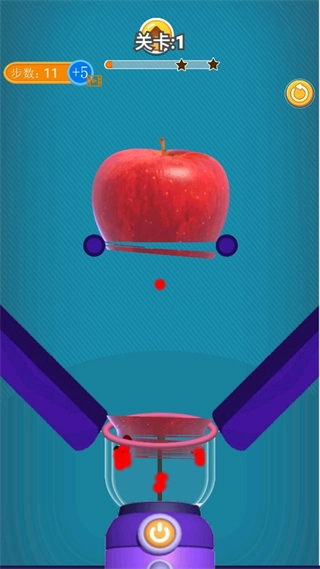 4、被切下的水果会掉入榨汁机中,随后被搅打成汁水;当所有水果都落入榨汁机后,玩家即可完成该关卡。