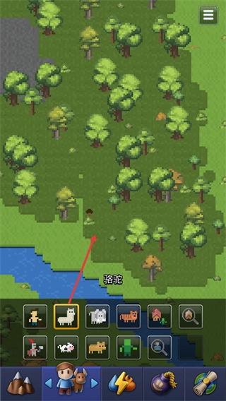 1、点击底部【红色框】内呈现角色、骆驼、白色动物等生物类及工具类图标栏,开展场景互动操作。