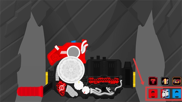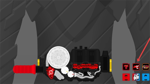 3、将选中的红色道具装配到腰带装置的对应位置,完成变身组件的初步布置。