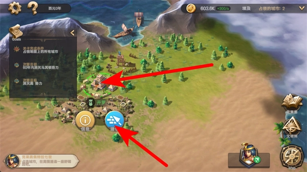 1、在征服者时代的主界面中,点击界面下方与建筑相关的按钮,即可进入建筑选择页面。