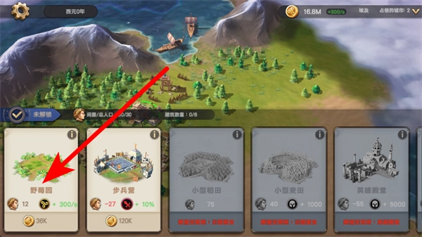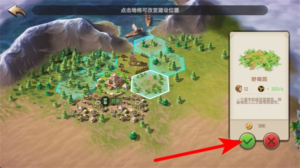 3、在主界面地图区域,找到合适的地格,点击确定野莓园的建设位置。