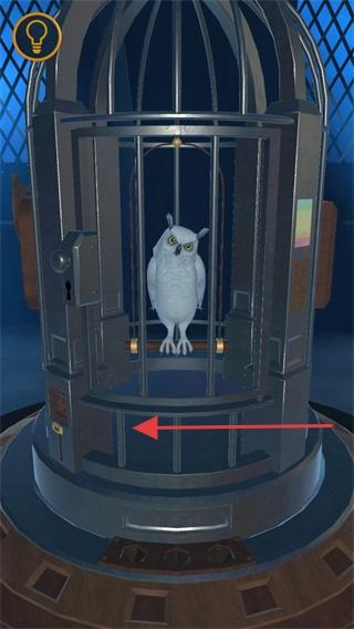 3、进入鸟笼场景后,留意笼内的白色猫头鹰,通过调整视角或操作界面,探寻鸟笼的可交互区域。