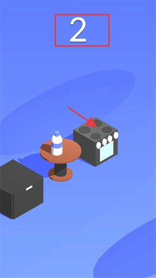 4、瓶子落在棕色圆台上后,分数会更新为【2】,此时再次点击屏幕,就能让瓶子朝着右侧的新目标平台跳跃。