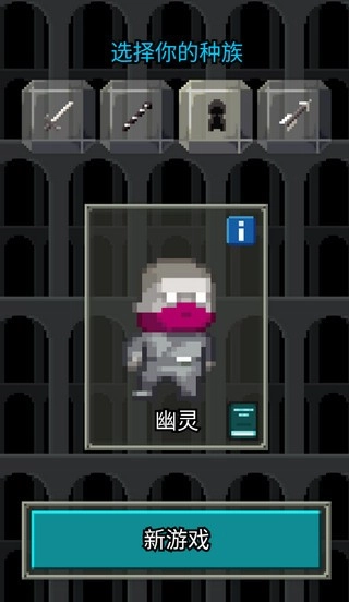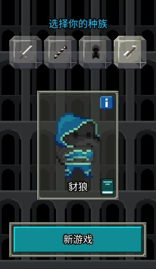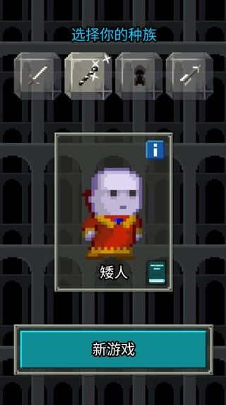 3、职业选择好后还需要选择种族,选好自己的种族后再次点击“新游戏”进入地牢。