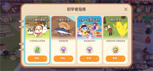 7、认养完毕之后,就可以点击左上角的初学者指南领取完成任务的奖励;