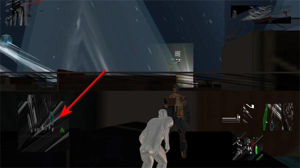2、找到箭头标注的交互区域,触发对应操作,这是推进剧情的基础操作,操作后可与目标角色建立互动关联。