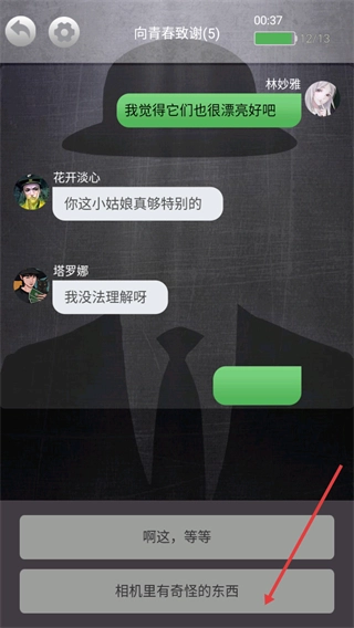 2、红箭头指向【相机里有奇怪的东西】选项推进剧情。