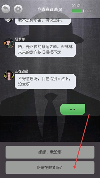 3、红箭头指向【我是在做梦吗?】选项回应。
