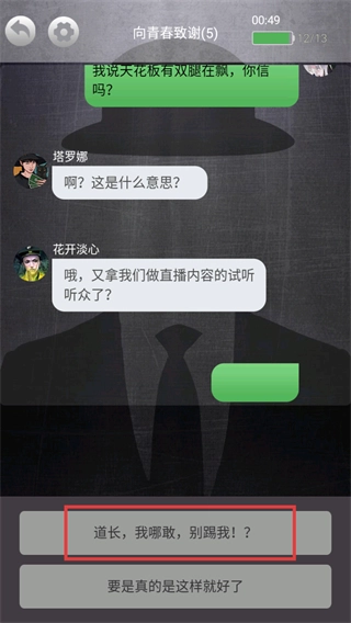 4、红框选【道长,我哪敢,别踢我!?】推进。