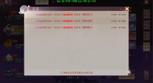 玩家可在日志上查看以上所有魔王的珍惜掉落物品。