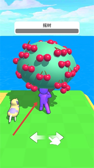 3、按提示滑动操作,摇树让樱桃掉落至地面。