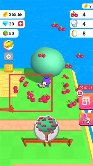 4、将樱桃都摇下来,收集掉落的樱桃资源即可。