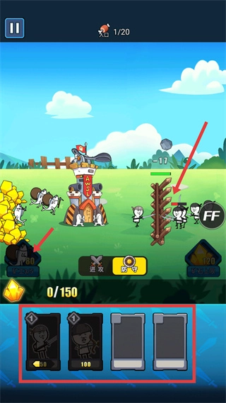 2、进入后布置兵种来抵挡敌人进攻;