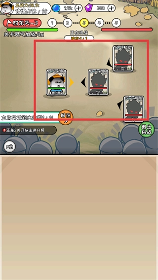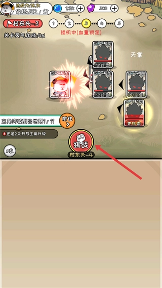 1、在【村东头-4】处点击【挑战】,触发与敌对阵营角色的对战,推进的关卡进度。