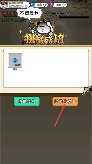 3、对战获胜时会显示【挑战成功】,并可获得【蓝色-灵气】作为奖励,点击【继续挑战-5s】按钮即可进入下一轮对战。