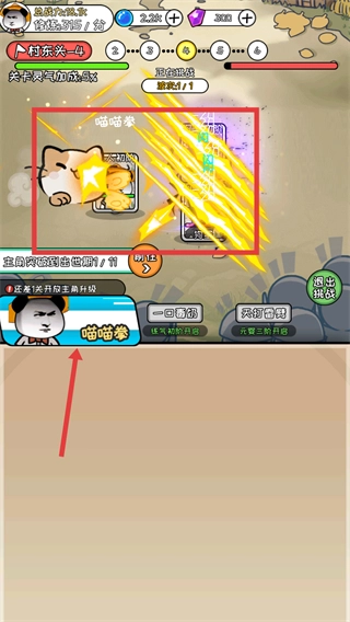 4、前往【村东头-5】位置触发战斗,控制角色使用技能(例如【喵喵拳】)对敌人发起攻击,以此推动关卡进程。