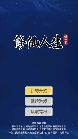 1、安装好修仙人生模拟器正版,运行游戏,点击新的开始;