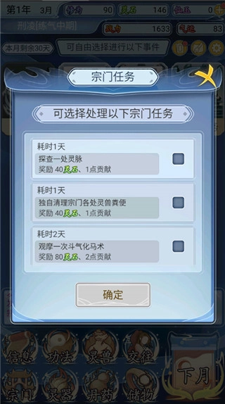 8、完成宗门任务还能获得灵石、贡献等奖励。