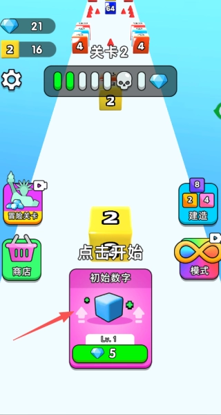 3、在关卡开启前,玩家可以花费钻石来提升初始数字方块的等级,等级提升后初始方块的数值会变得更大,这样就能更快速地合成高等级方块,从而减轻前期闯关时的难度。