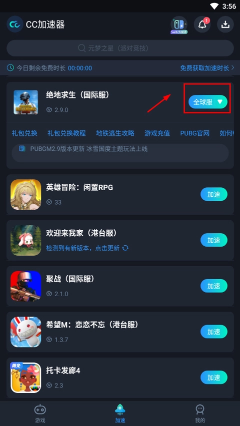 1、在本站提供的绝地求生国际服,游戏需要通过***来启动,先打开CC***,找到这款游戏,接着点击右侧的加速按钮即可。