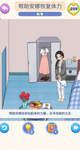 进入游戏后,初始目标设定为协助安娜恢复体力并寻找她的丈夫,以此明确核心任务方向,帮助玩家快速融入解谜情境。