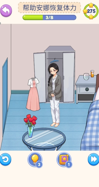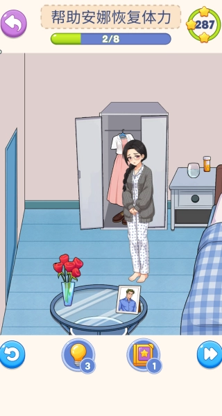 2、认真留意关卡场景里的各类物品,点击能吃的道具喂给主角,慢慢帮他恢复体力,以此推动线索收集的进度。