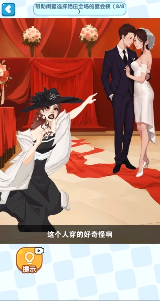 2、按照关卡要求做出选择,如艳压全场的宴会装搭配,或在图画中定位违和物品,推进挑战进度。