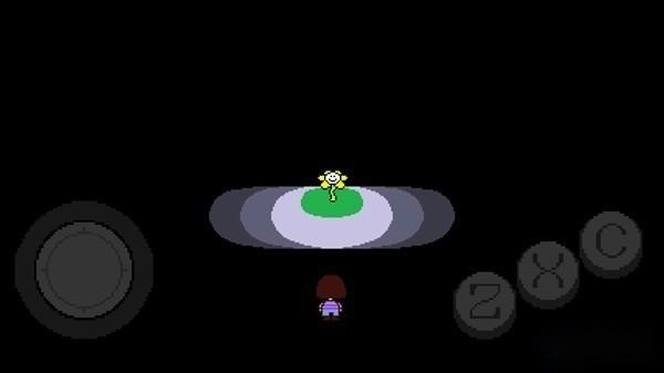 4、从跌落的地方往右边的门走,会碰到一朵叫花儿的花。它表面上看起来挺友好,可实际上一肚子坏水,想用那种心形的力量来攻击你。好在遗迹的看门人Toriel及时赶来了,把花儿打跑了,还答应要带你离开这个墓穴。