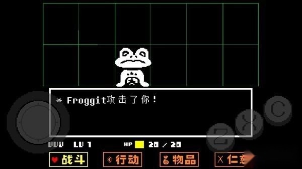 7、在北面的藤蔓房间遇到青蛙froggit,通过赞美它使其开心并逃离战斗。Toriel帮助你通过右面水池上的尖刺陷阱。