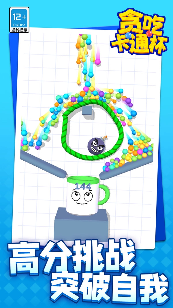 贪吃卡通杯是一款创意十足的轻松解压休闲游戏,玩起来既治愈又让人上瘾!在色彩鲜艳的卡通世界里,你得仔细留意可爱大球的运动路径,用有限长度的线条画出封闭框把它圈起来。等线框慢慢收缩,大球就会被挤得分解成好多小球,像瀑布似的流进下面的卡通杯里。收集的小球越多,进度条推进得就越快,还能解锁更多丰厚奖励,整个过程操作简单、画面治愈,绝对是空闲时解压的好选择!