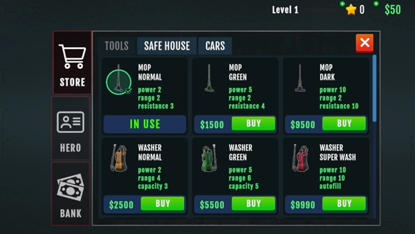 1、游戏里配备了各式各样的清洁工具与设备,能协助你更高效地达成任务;