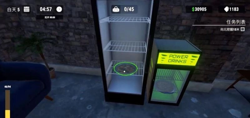冰箱里存放着不少食物和其他物品,要是你想获取这些物品,可以把它们放进背包里,但你得定期清理背包,还要合理规划这些物品。