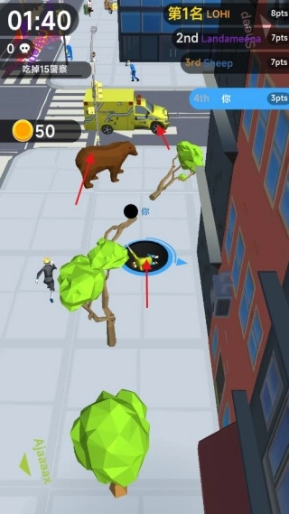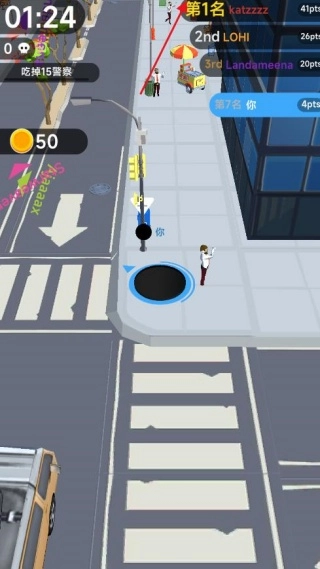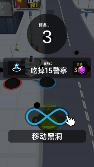 2、当接到“吃掉15个警察”这类目标任务时,建议先通过移动操作来熟悉黑洞的移动节奏,之后再针对性地向警察出现的区域靠近。