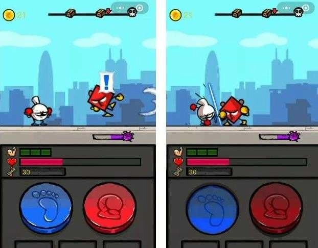 2、在热血细胞游戏中,玩家乘坐火箭抵达战场后便开启战斗,游戏界面设有红蓝两个按键。其中红色按键用于挥拳攻击敌人,蓝色按键则能发动飞毛腿将病菌踢飞。