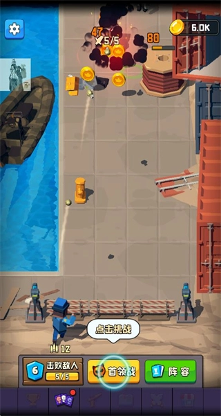 1、在关卡中操控角色射击敌方单位,完成击败敌人等任务目标,同时收集场景中的金币资源,推进关卡进度。