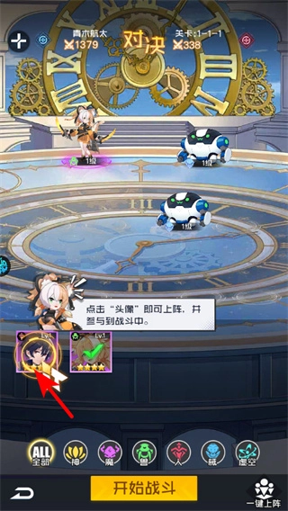 1、进入对战界面后,点击头像选中上阵角色,这是配置出战阵容的关键操作,选中后角色将加入战斗队列。