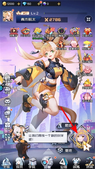 4、按照提示点击招募按钮,这是获取新伙伴的操作,点击后可进入招募界面解锁新角色。