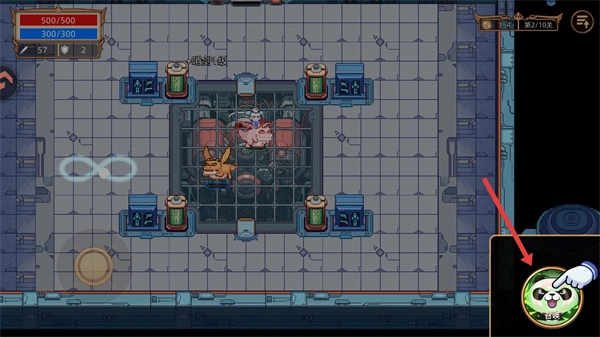 3、当进入心得关卡后可以点击右下角来召唤辅助角色去协助战斗。