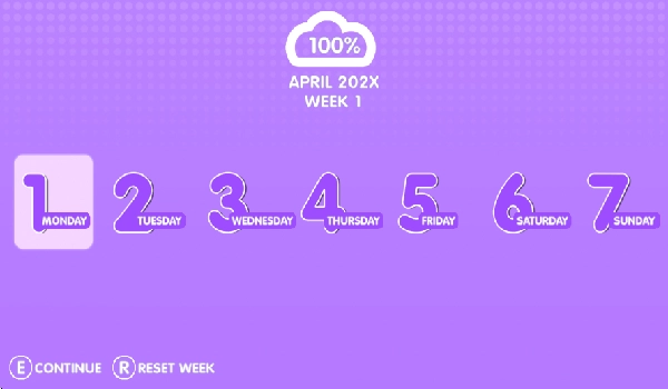 2、选择星期一开始新的一天,点击下方的continue开始进入游戏中。
