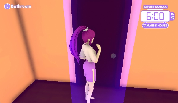 4、我们走到卫生间先洗漱一番吧,点击E即可开门进入到卫生间。