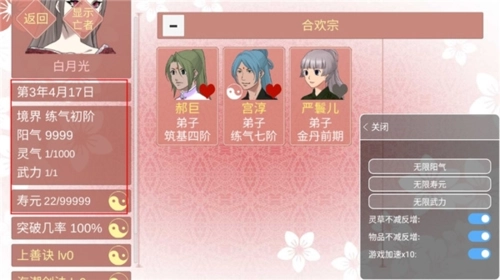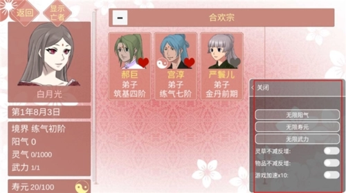 合欢宗:没有阳气,好感锁99上不去。事件捡来的徒弟不受此限。扩大人脉关系的首选。