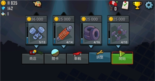 1、双击打开登山赛车正版,玩家需要选择关卡来进行闯关;