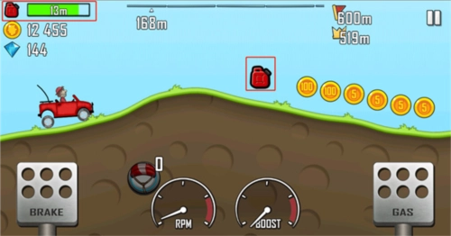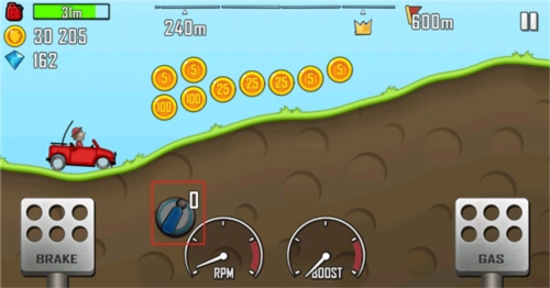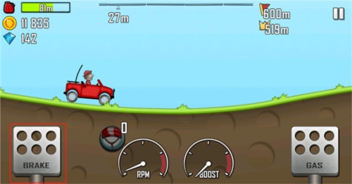 7、升级发动机时会发出真正涡轮的声音!趣味平衡类游戏,游戏全程就是一位面无表情的大叔开着销魂的红色汽车在各种崎岖的路上前行。