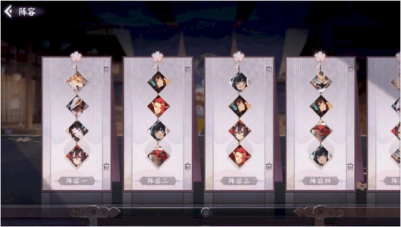 组建卡组的地方,首先要选择四个出战式神,然后再选择这四个式神的对应卡牌,每个式神必须携带八张卡牌。“阵容”里可以组建10套不同的卡组,使客人们能够应对不同的对战局面。建好卡组之后,