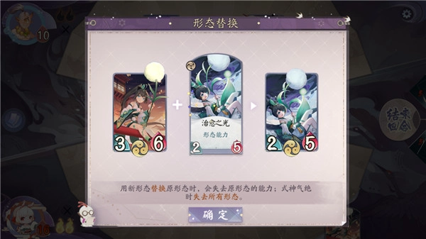 1、形态牌会让式神拥有新的技能和属性,但会在气绝后消失,若是你的式神使用了形态牌,那就尽可能地让他不要气绝。